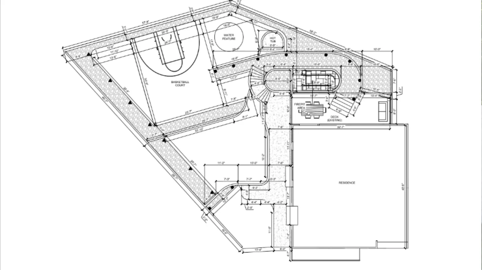 Step 1: Base Plan – Show the existing space with a 2D top-down plan. Include existing trees, structures, and key measurements